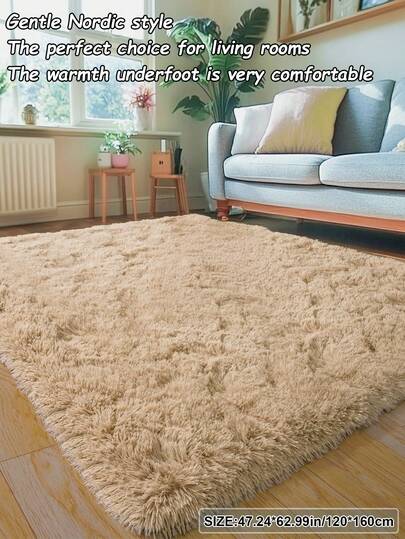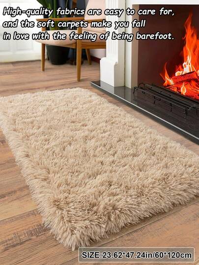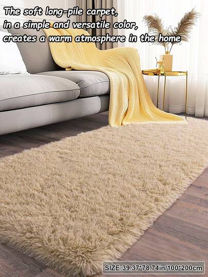 1pc Solid Color Soft & Comfortable Long Pile Camel Shag Rug, Modern Minimalist Nordic Style Warm-Toned Room Decor, Plush Cozy Cream Textured Home Decor, Autumn/Winter Seasonal Gift, Fluffy Christmas/Halloween/Valentine's Day Decorative Gift, Easy Care Living Room, Sofa, Bedroom Bedside Carpet